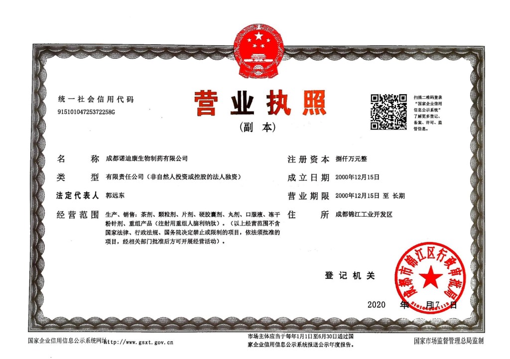 成都諾迪康生物制藥有限公司始建于2000年12月,注冊資本8000萬元,系西藏諾迪康藥業(yè)股份有限公司(股票簡稱: 西藏藥業(yè),股票代碼:600211)全資子公司,位于成都市錦江工業(yè)園內(nèi),是最早批進入錦江工業(yè)園區(qū)的企業(yè)之一,屬于四川省及成都市現(xiàn)階段重點培育和發(fā)展的七大戰(zhàn)略性新興產(chǎn)業(yè)之一。公司是西藏藥業(yè)旗下生物藥品(重組蛋白)的研發(fā)生產(chǎn)基地,國家一類基因工程藥物“注射用重組人腦利鈉肽”的產(chǎn)業(yè)化生產(chǎn)基地,擁有原核表達(dá)系統(tǒng)(大腸桿菌)基因工程規(guī)?;a(chǎn)平臺(基因車間、凍干車間)。