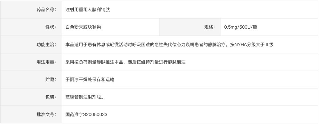 產品名稱:注射用重組人腦利鈉肽